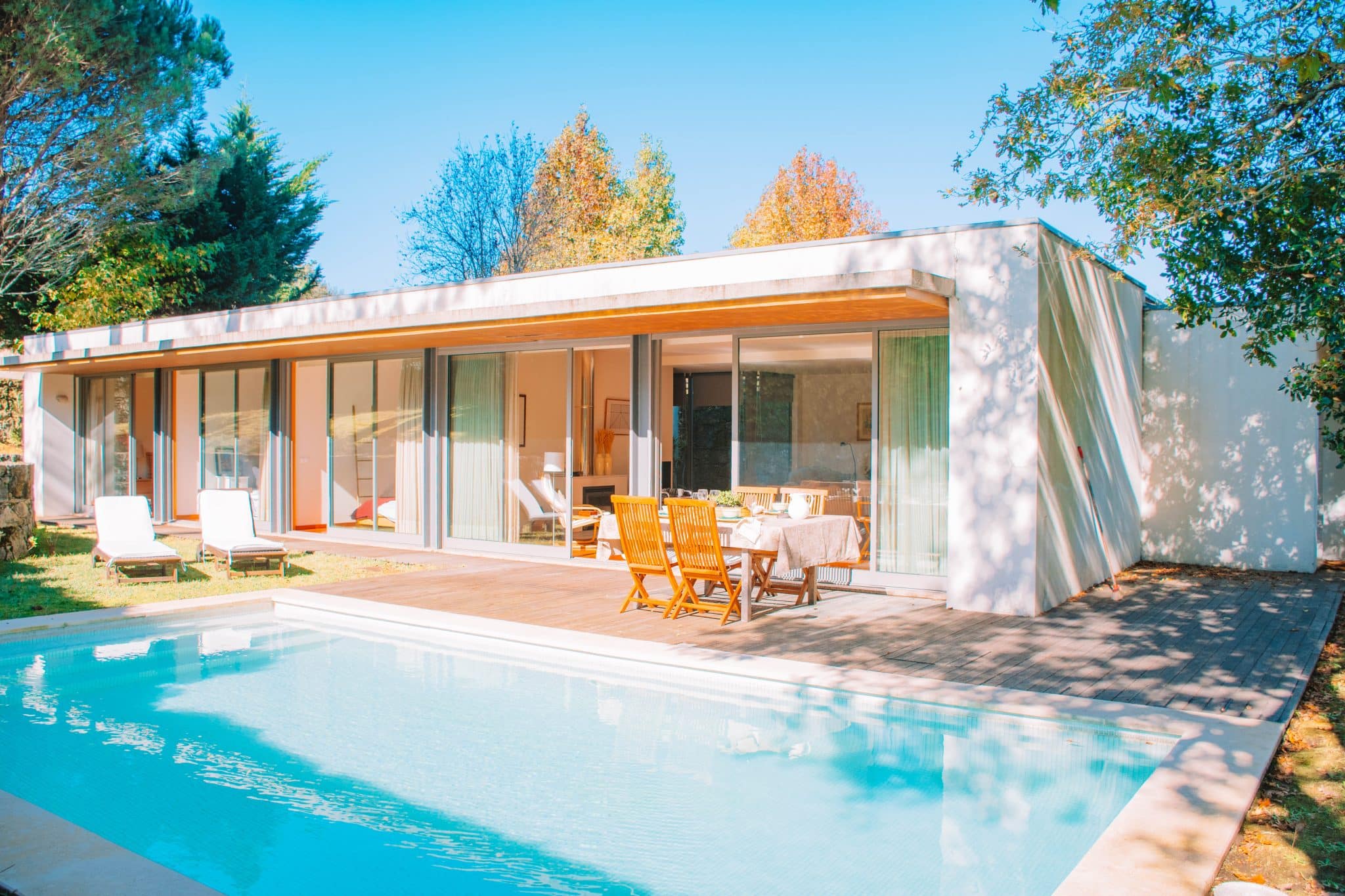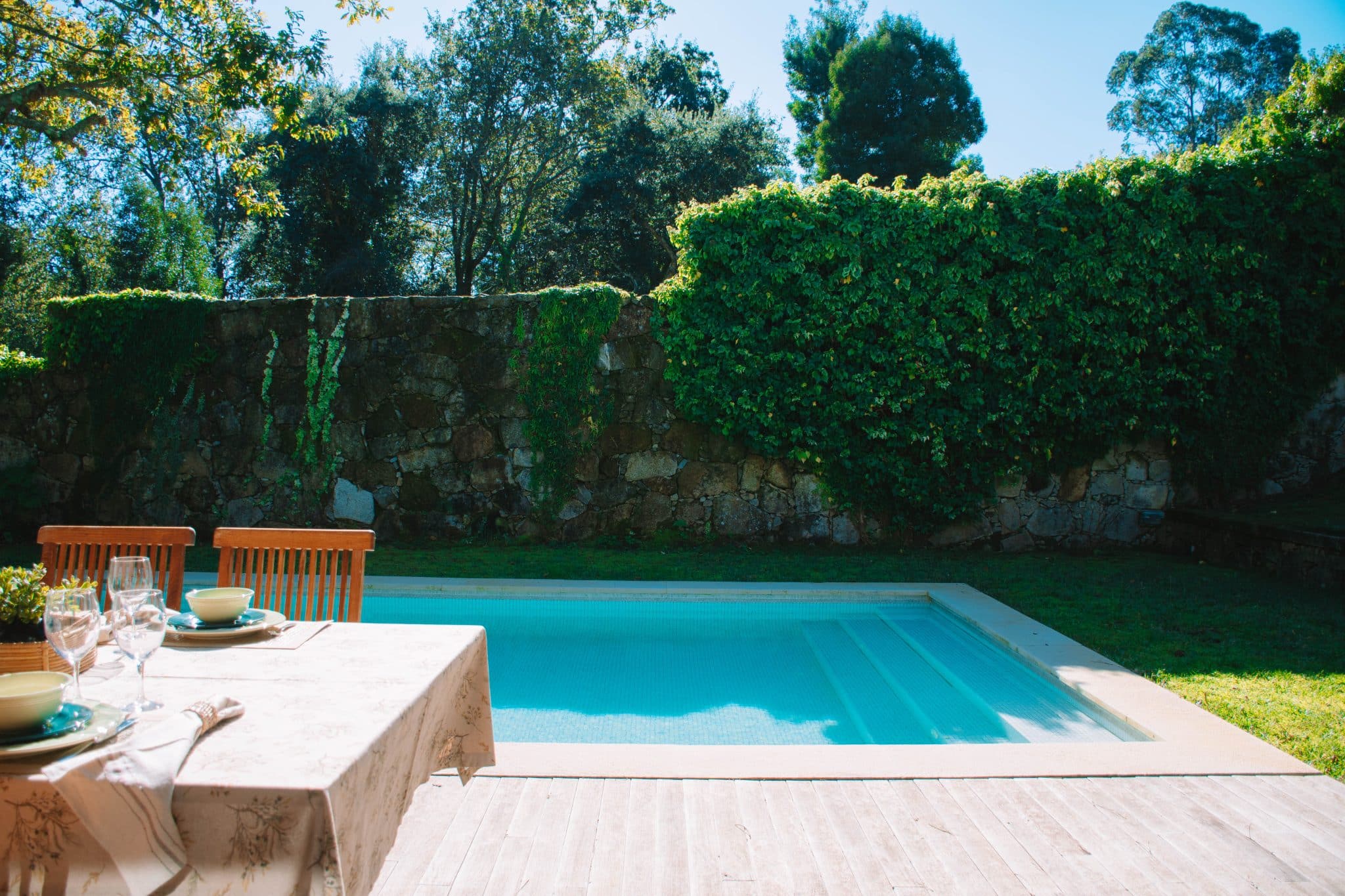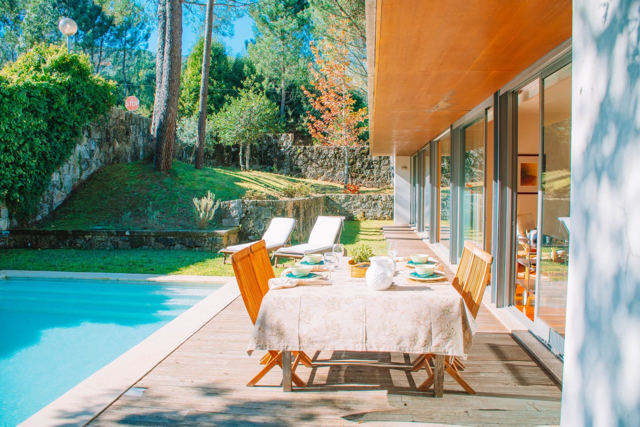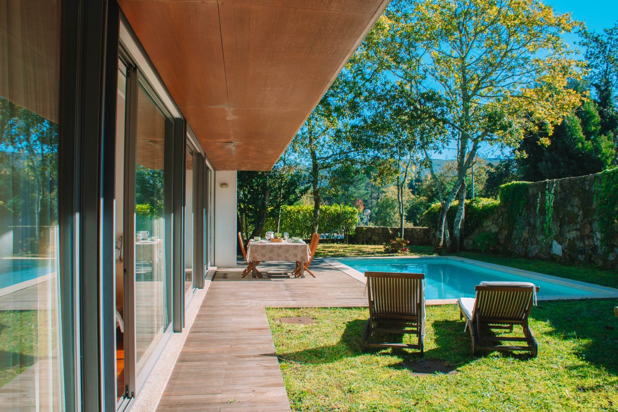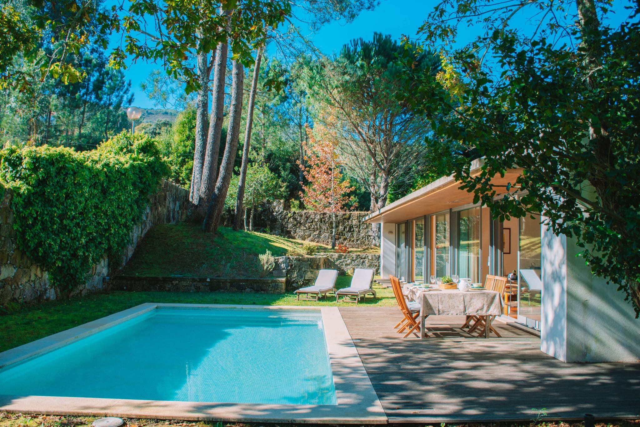 Para aproveitar ao máximo os dias de sol, a casa dispõe de um jardim com piscina privada, ideal para momentos de lazer e descontração. Além disso, conta com um deck exterior equipado com uma zona de refeições, perfeito para desfrutar de refeições ao ar livre em total privacidade.