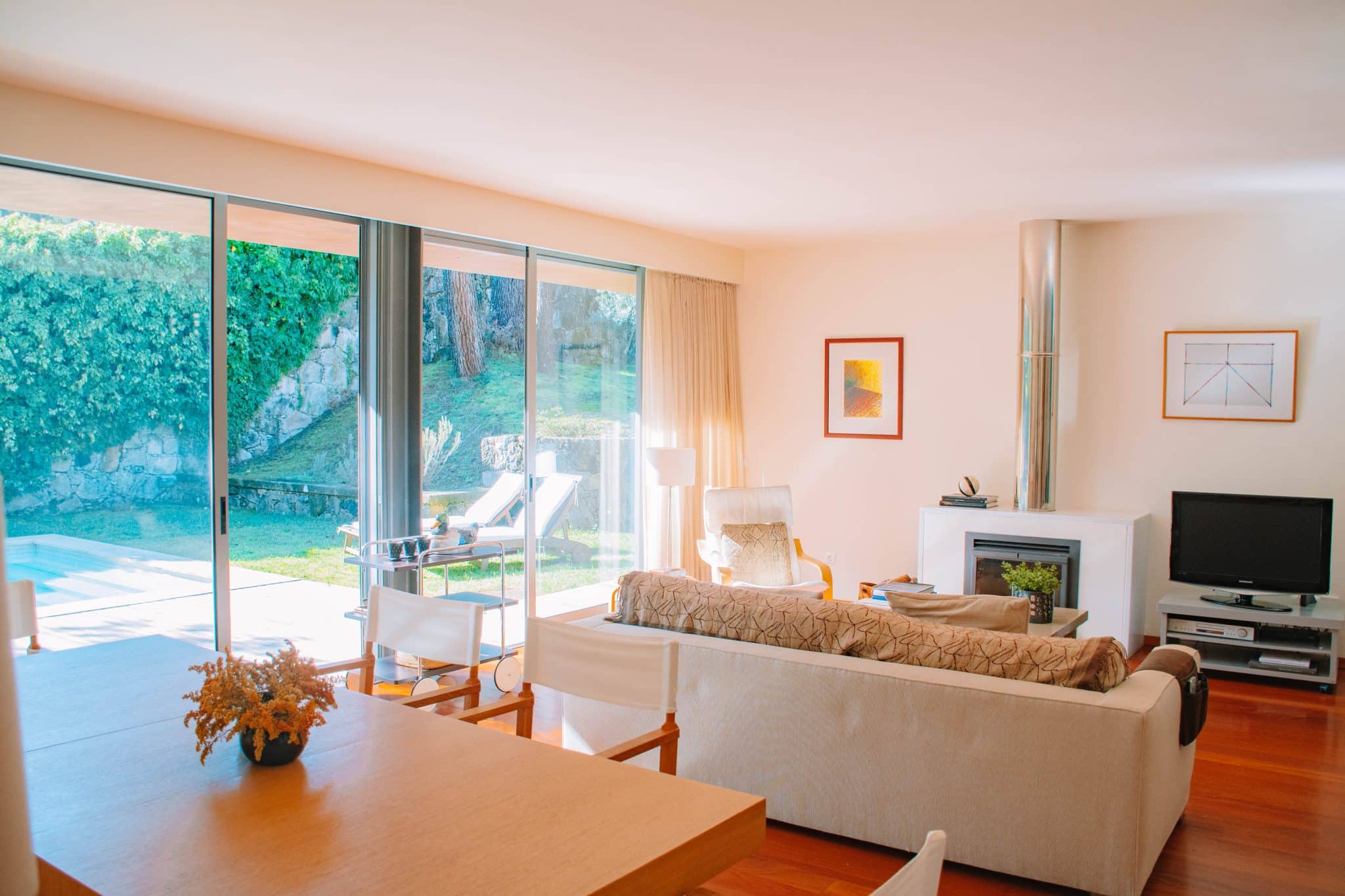 Com uma decoração harmoniosa e funcional, a casa conta com três quartos espaçosos e grandes áreas envidraçadas que permitem uma ligação perfeita com o exterior.