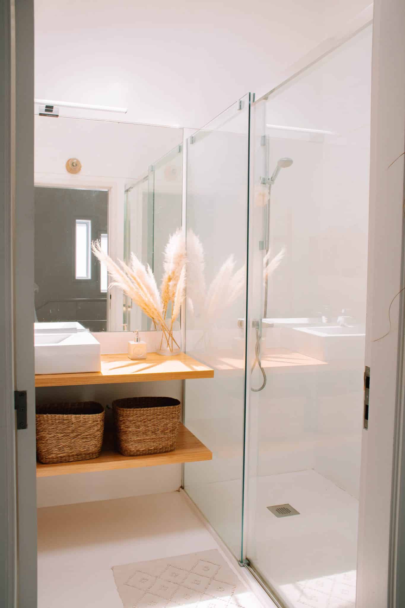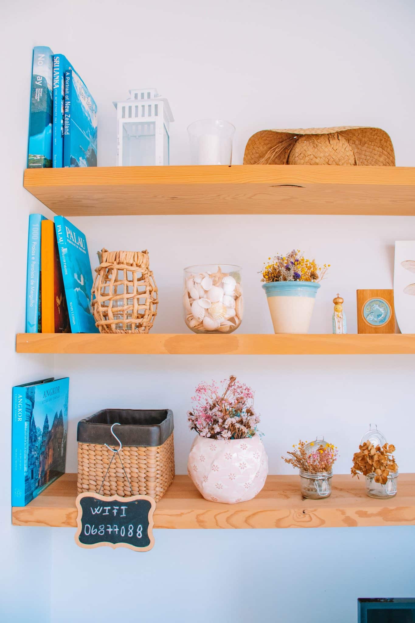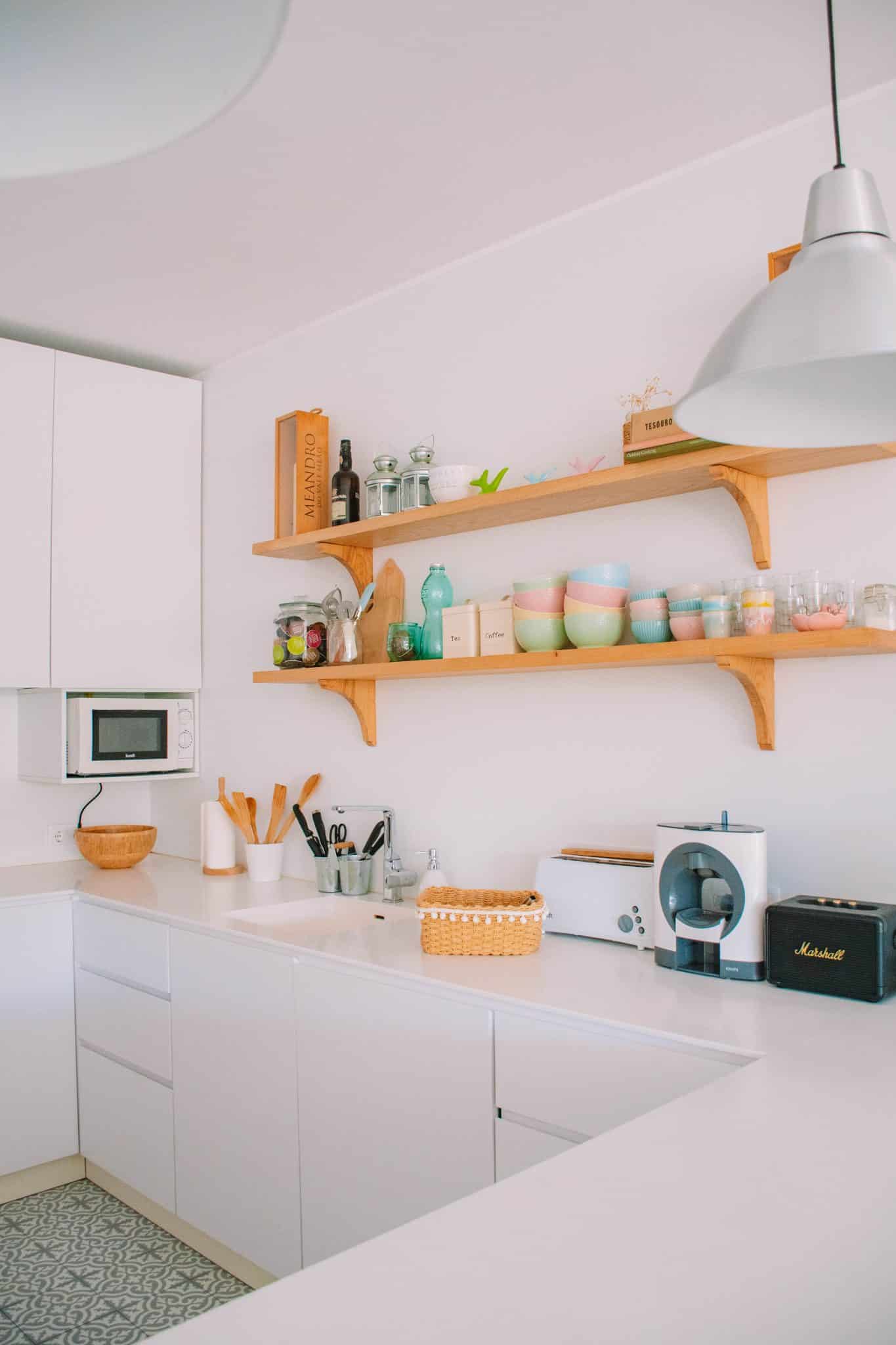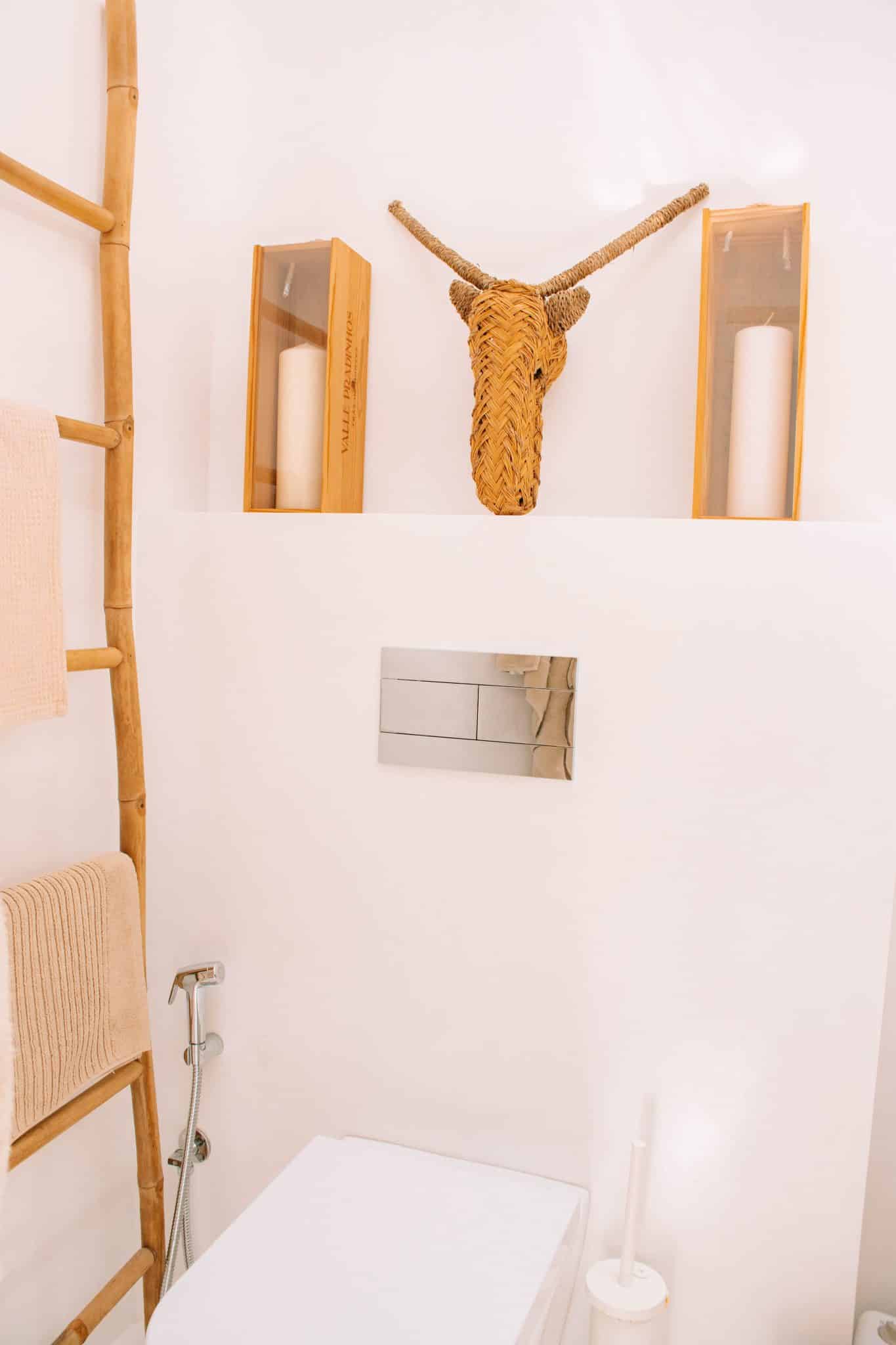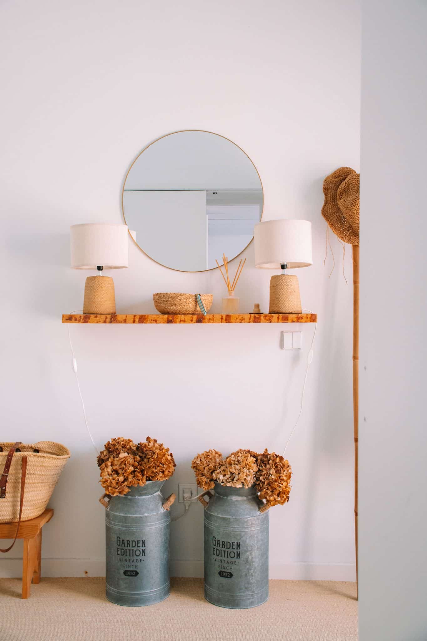 Toda branca – do chão ao tecto – a casa transmite uma sensação de paz, luz e harmonia. A decoração é uma fusão elegante entre o rústico e o moderno, com peças de design e objetos colecionados em viagens pelo mundo, conferindo-lhe um carácter verdadeiramente especial.